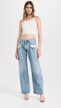 - Fabric: Mid-weight, non-stretch denim - Pleated front - Fading and whiskering - Button closure and zip fly - 5-pocket styling - Shell: 100% cotton - Hand wash - Made in Italy Style #MARGI41118 Size & Fit Measurements from size 36 Rise: 9.75in / 25cm Inseam: 30in / 76cm Leg opening: 18in / 46cm