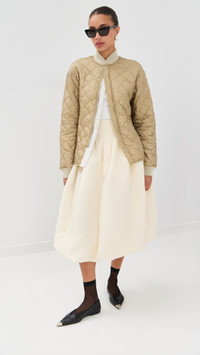 - Fabric: Lightweight, non-stretch technical weave - Ribbed knit trim - Quilted design - Crew neck - Long sleeves - Snap flap and hidden zip placket - Shell: 100% polyamide - Lined - Lining: 100% polyester - Dry clean - Made in Italy Style #MARGI41183 Size & Fit Model measurements: Size S: Drew (5'8") usually wears size XS-S Measurements from size S Length: 25.25in / 64.0cm, from shoulder