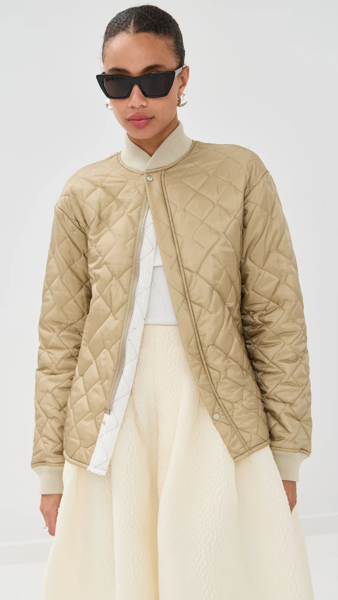 - Fabric: Lightweight, non-stretch technical weave - Ribbed knit trim - Quilted design - Crew neck - Long sleeves - Snap flap and hidden zip placket - Shell: 100% polyamide - Lined - Lining: 100% polyester - Dry clean - Made in Italy Style #MARGI41183
