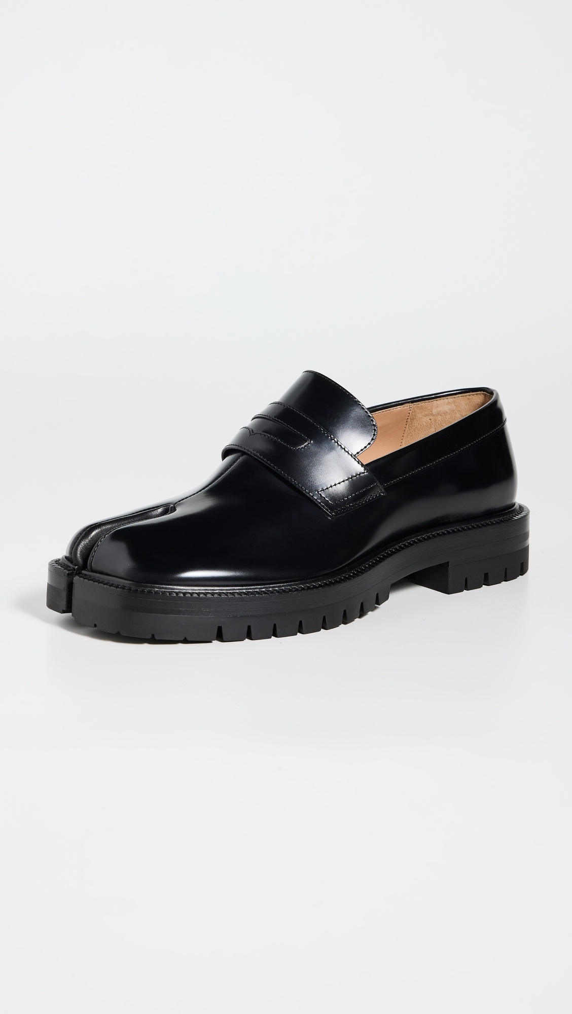 - Upper: Calfskin - Signature split toe design - Penny vamp strap - Lug sole - Square toe - Rubber sole - Made in Italy - This item cannot be gift-boxed Style #MMMAR30300 Size & Fit Heel: 1.5in / 35mm