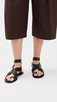 - Upper: Leather - Gold-tone hardware - Toe strap - Cushioned footbed - Lining: Unlined - Buckle ankle strap - Open toe - Leather sole with rubber heel cap - Made in Italy - This item cannot be gift-boxed Style #MANDB30569