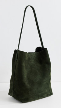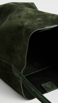 - Suede - Fixed strap - Open top with magnetic closure - Patch interior pocket - Lining: Unlined - Weight: 22oz / 0.62kg - Made in Italy Style #MANDB30622 Size & Fit Length: 15.75in / 40cm Height: 12.5in / 32cm Depth: 6.75in / 17cm Strap drop: 11in / 28cm