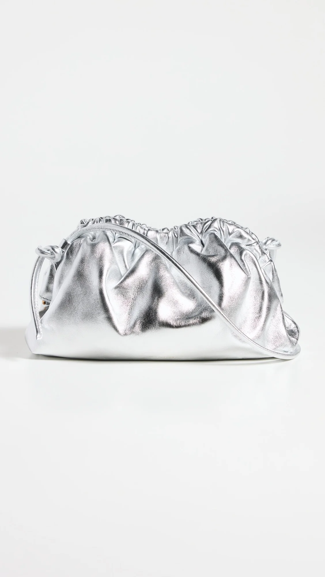 - Calfskin - Ruched design - Metallic finish - Hinged opening with magnetic closure - Crossbody strap - Leather lining - Weight: 9oz / 0.26kg - Made in Italy Style #MANDB30496 Size & Fit Length: 9.75in / 25cm Height: 5.5in / 14cm Depth: 2.75in / 7cm Strap drop: 19.75in / 50cm
