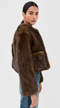 - Fabric: Mid-weight, non-stretch faux fur - Logo lettering at buttons - Crew neck - Long sleeves - Button placket - Patch front pockets - Shell: 100% polyester - Lined - Lining: 50% acetate/50% viscose - Dry clean - Imported, China Style #MJADB34186