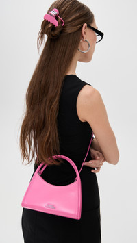 - Cowhide - Matching claw clip included - Silver-tone logo emblem at front - Slip pocket at back - Fold-over flap with magnetic closure - Card slots at interior - Optional, adjustable strap - Lining: Textile - Weight: 20oz / 0.57kg - Imported, Vietnam Style #MJADB34168