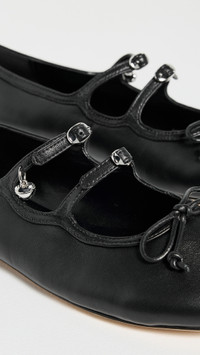 - Upper: Leather - Logo charm at closure - Bow at vamp - Lining: Faux leather - Buckle closures - Round toe - Leather sole with rubber heel cap - Imported, China - This item cannot be gift-boxed Style #MJADB34193