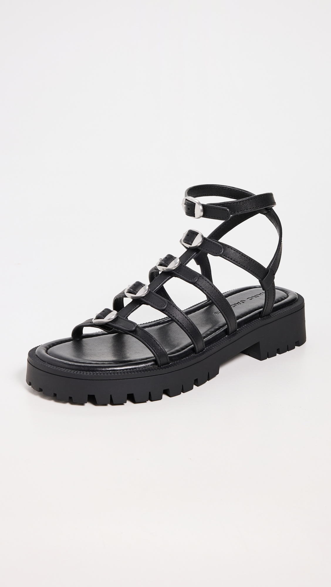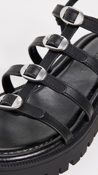 - Upper: Leather - Silver-tone buckles - Lining: Leather - Chunky heel - Buckle ankle strap - Open toe - Rubber sole - Imported, China - This item cannot be gift-boxed Style #MJADB34094