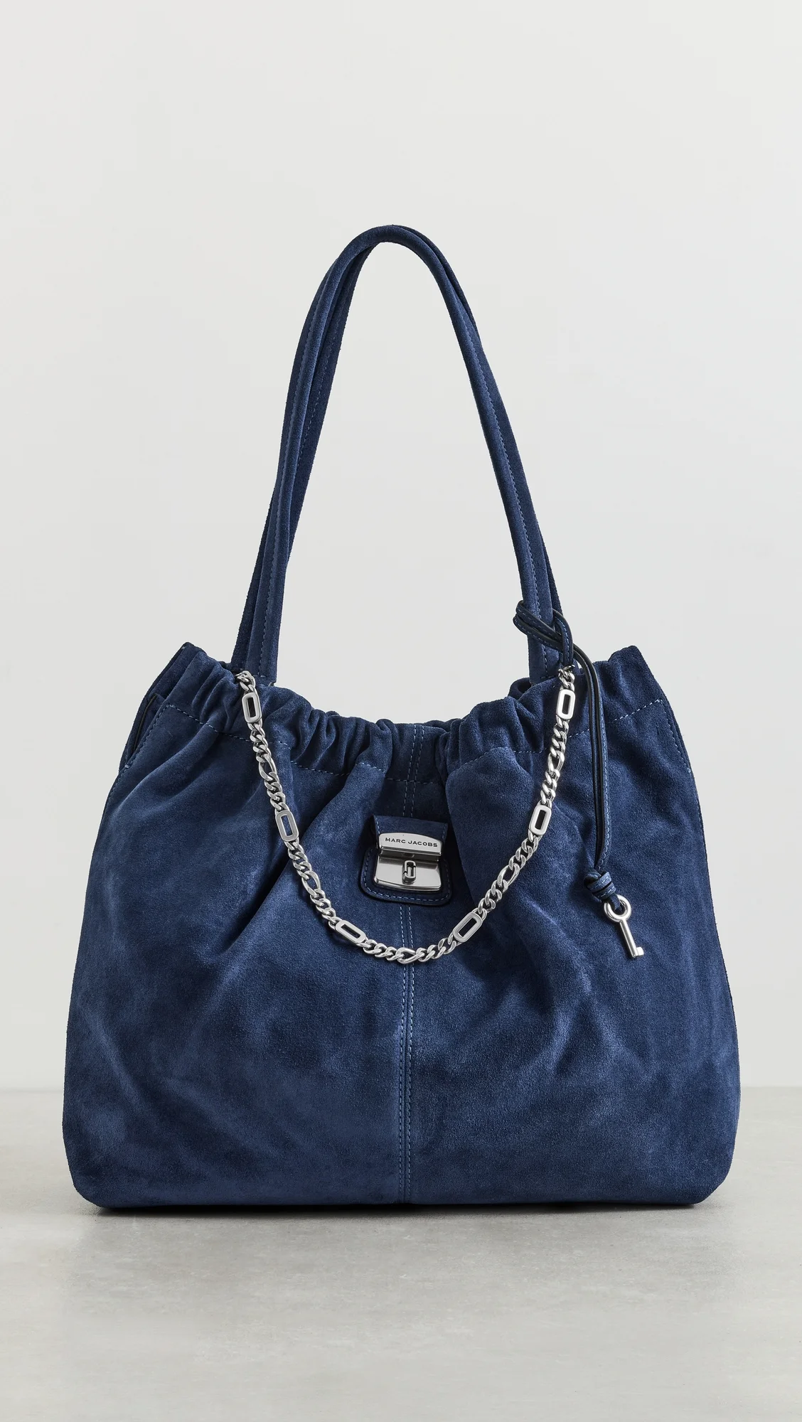 - Suede - Decorative chain strap and key charm - Silver-tone logo hardware at front - Ruched topline - Open top with magnetic closure - Zip interior pocket - Lining: Textile - Weight: 32oz / 0.91kg - Imported, Vietnam Style #MJADB34235