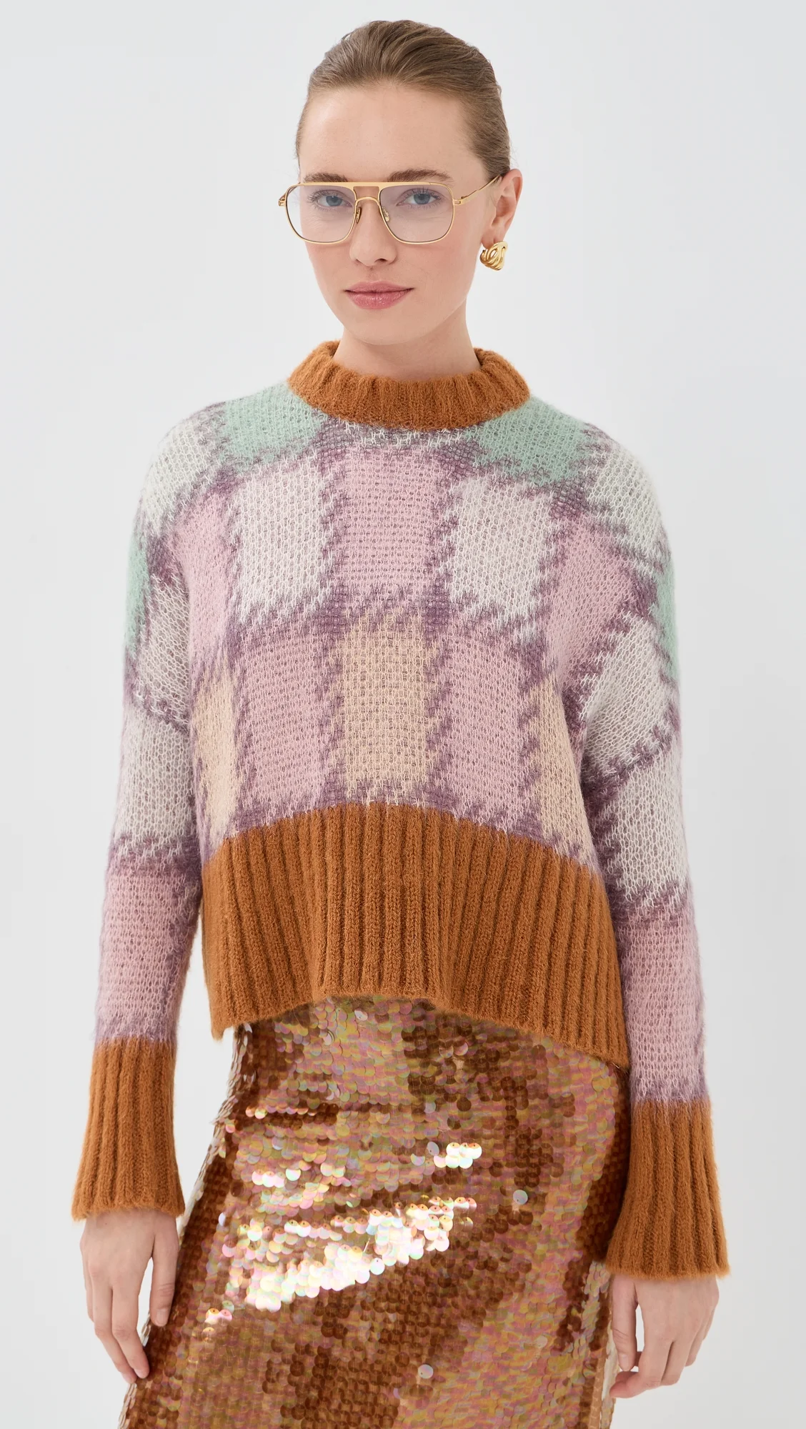 - Fabric: Lightweight brushed knit with stretch - Plaid pattern - Ribbed trim - Crew neck - Long sleeves with dropped shoulders - Shell: 37% acrylic/35% polyamide/28% mohair - Dry clean - Made in Italy Style #MARDB31453 Size & Fit Model measurements: Size 36: Lila (5'10") usually wears size 36 Measurements from size 38 Length: 19.75in / 50.0cm, from shoulder