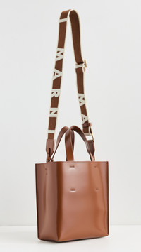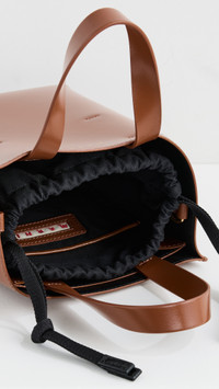 - Calfskin - Optional drawstring canvas bag with interior patch pocket - Gold-tone hardware - Logo canvas straps - Leather base - Open top - Patch interior pocket - Optional, adjustable strap - Lining: Leather - Weight: 18oz / 0.51kg - Made in Italy Style #MARDB31434