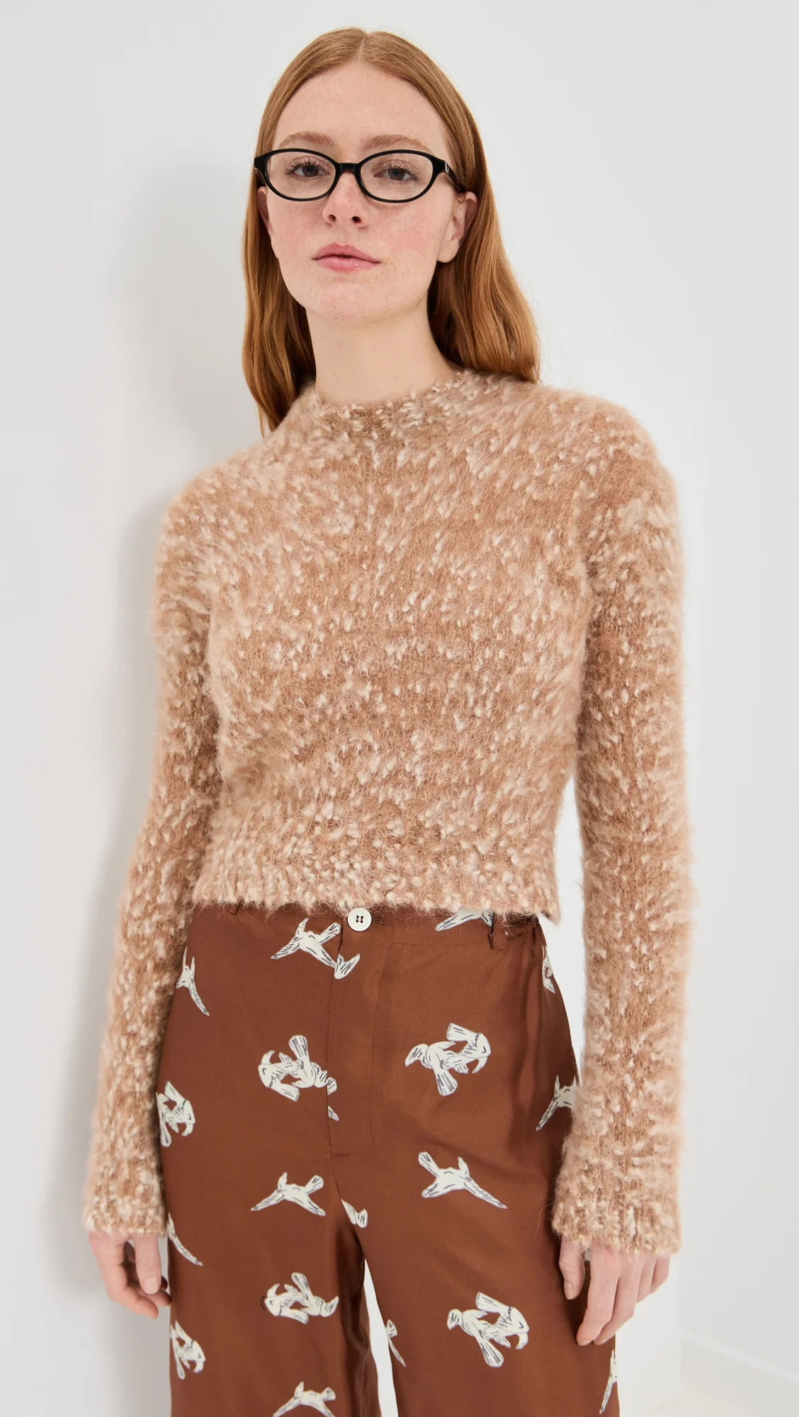 - Fabric: Lightweight fuzzy knit with stretch - Crew neck - Long sleeves - Shell: 63% alpaca/30% polyamide/7% wool - Dry clean - Imported, Romania Style #MARDB31420