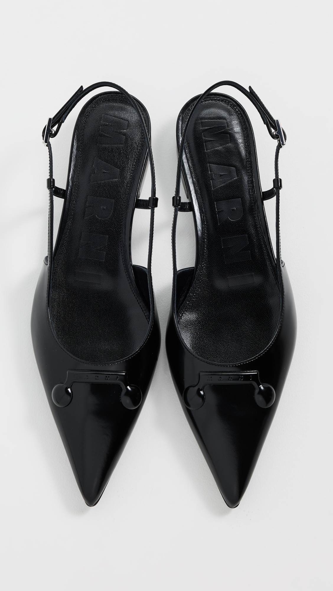 - Upper: Calfskin - Leather footbed - Raised logo detail - Lining: Leather - Buckle strap - Pointed toe - Leather sole with rubber heel cap - Made in Italy - This item cannot be gift-boxed Style #MARDB31416