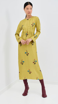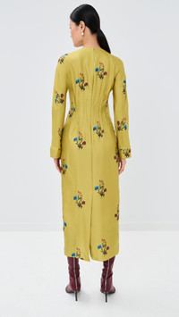 - Fabric: Lightweight, non-stretch silk twill - Pintucking at waist - Floral print - Midi length - Crew neck - Long sleeves - Hook-and-eye and hidden zip at back - Shell: 100% silk - Unlined - Dry clean - Made in Italy Style #MARDB31419 Size & Fit Model measurements: Size 38: Somin (5'10.5") usually wears size 36-38 Measurements from size 36 Length: 48.75in / 124.0cm, from shoulder