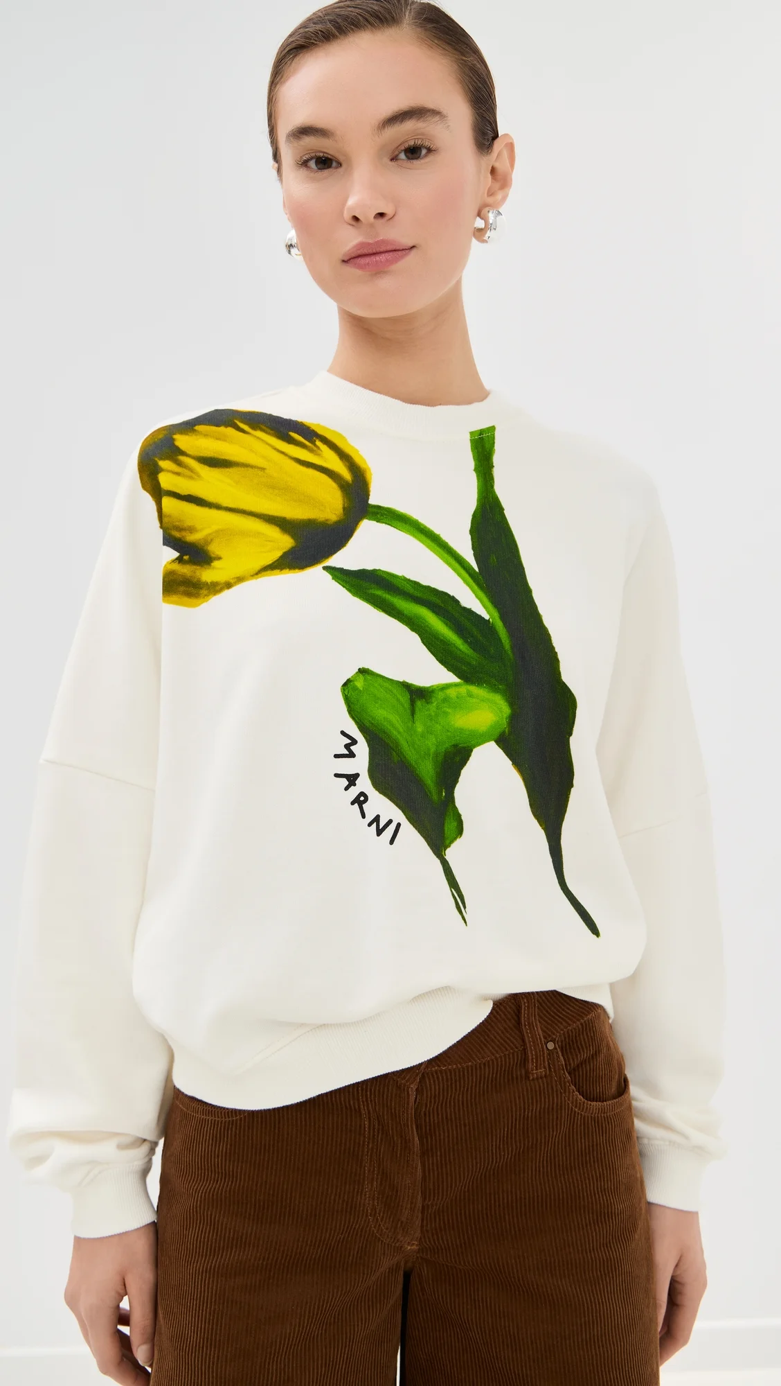 - Fabric: Mid-weight stretch jersey - Flower graphic with logo lettering at chest - Crew neck - Long sleeves with dropped shoulders - Shell: 100% cotton - Hand wash - Made in Italy Style #MARDB31422