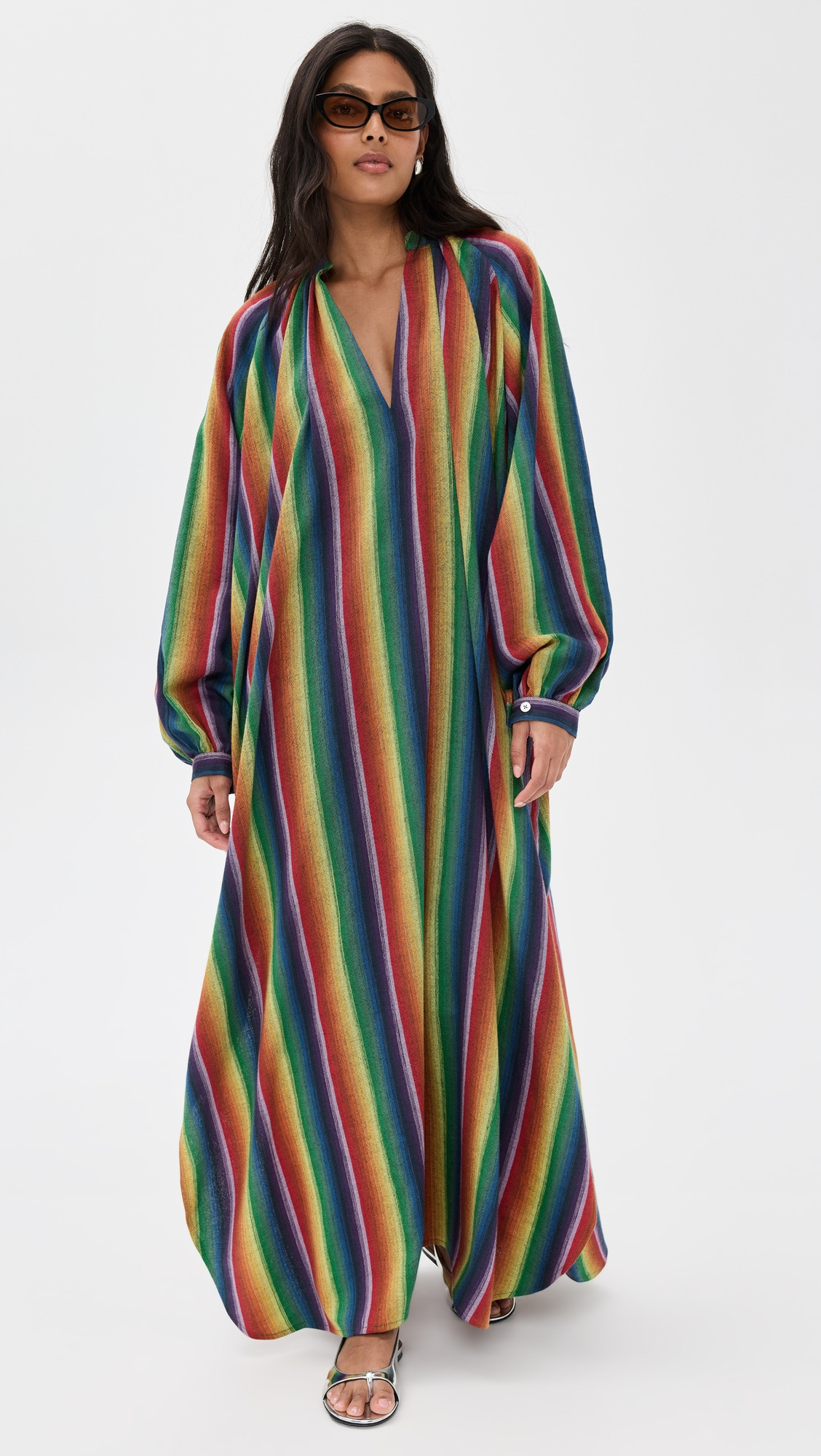 - Fabric: Lightweight, non-stretch weave - Button cuffs - Curved hem with side slits - Stripe pattern - Maxi length - Split neckline - Long puff sleeves - Pullover design, no closure - Shell: 100% cotton - Unlined - Dry clean - Imported, Morocco Style #MARRA30041