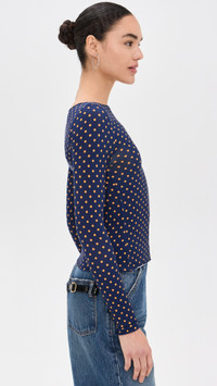 - Fabric: Lightweight jersey - Serge edges - Polka-dot print - Boat neck - Long sleeves - Shell: 94% tencel lyocell/6% spandex - Wash cold - Imported, China Style #MIAOU30135