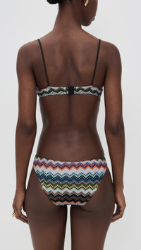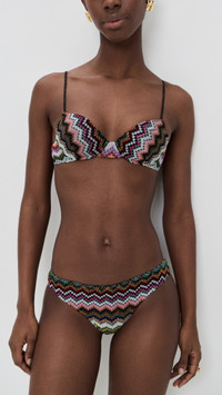 - Signature zigzag pattern with metallic threading - Elastic shoulder straps - Moderate coverage - Bikini clasp - Padded underwire cups - Shell: 83% viscose/17% metallic - Lined - Lining: 80% polyamide/20% elastane - Hand wash - Made in Italy Style #MISON40990