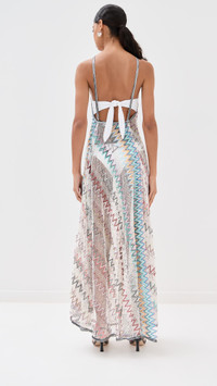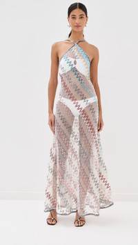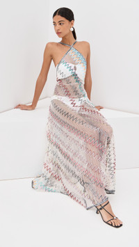- Fabric: Mid-weight stretch mesh - Zigzag pattern and sequin embellishments - Maxi length - Crew neck - Pullover design, no closure - Semi-sheer - Shell: 95% viscose/3% polyamide/2% polyester - Unlined - Dry clean - Made in Italy - Sleeveless Style #MISON40814 Size & Fit Model measurements: Size 36: Rocio (5'11") usually wears size 36 Measurements from size 36 Length: 55in / 140.0cm, from shoulder