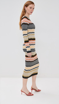 - Fabric: Mid-weight ribbed knit with stretch - Zigzag pattern - Midi length - Crew neck - Long sleeves - Pullover design, no closure - Shell: 50% viscose/48% cotton/1% elastane/1% polyamide - Unlined - Dry clean - Made in Italy Style #MISON40902 Size & Fit Features a slim, midi-length cut. Stretch knit has a mid-weight feel. Shopbop’s expert stylist says: Runs true to size Model measurements: Size 38: Haley (5'9.5") usually wears size 38 Measurements from size 36 Length: 48.5in / 123.0cm, from shoulder