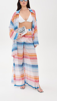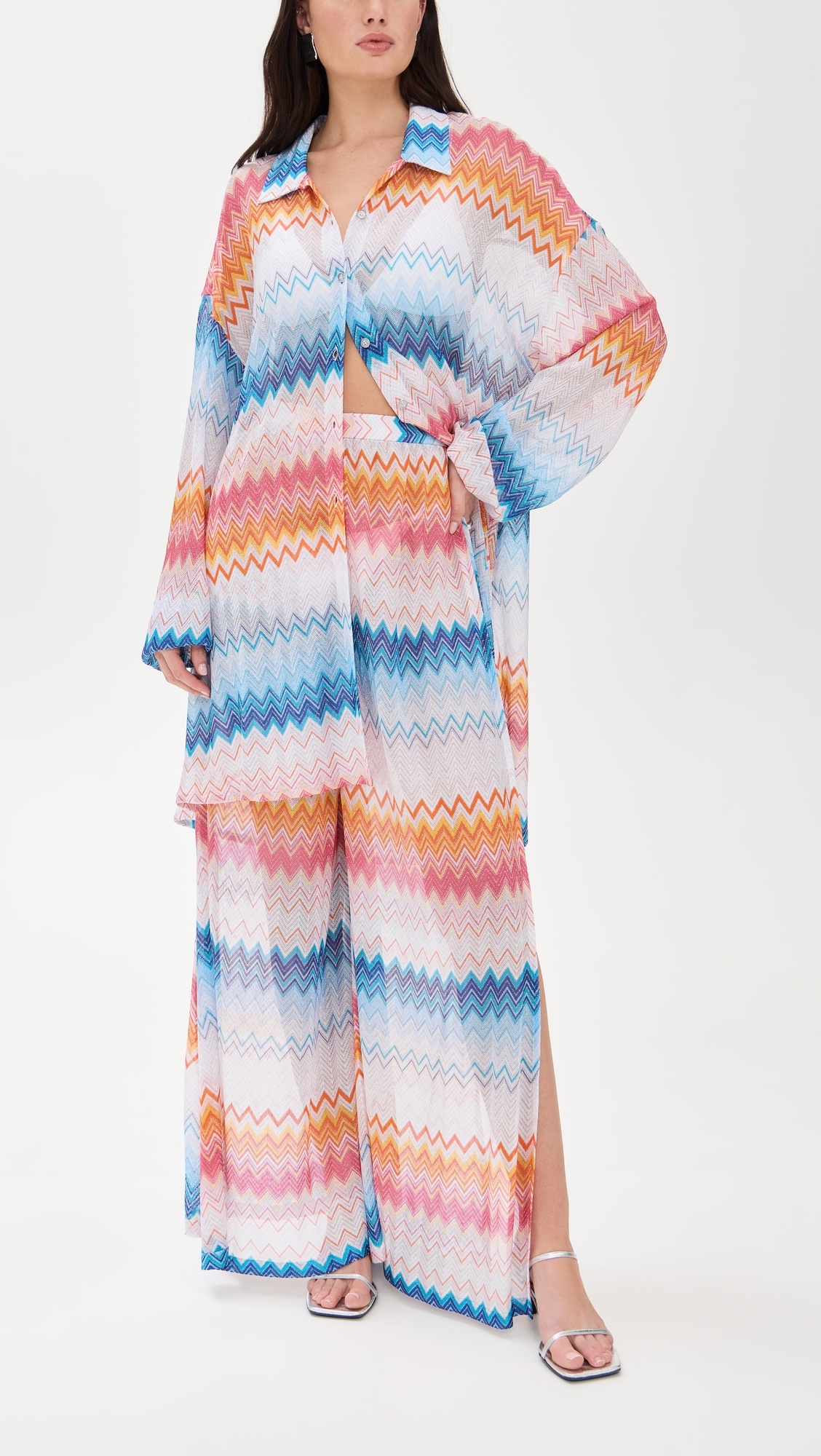 - Fabric: Lightweight stretch knit - Zigzag pattern with metallic threading - Collared neck - Long sleeves with dropped shoulders - Button placket - Semi-sheer - Shell: 90% viscose/6% polyester/4% polyamide - Dry clean - Made in Italy Style #MISON40817