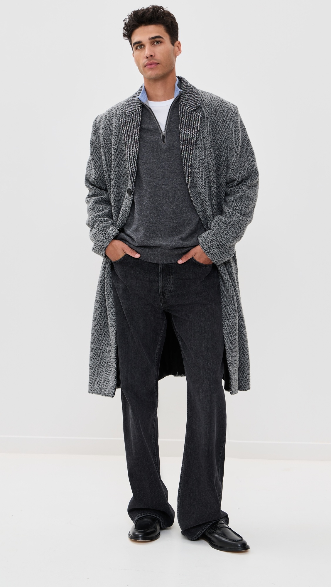 - Fabric: Heavyweight, non-stretch tweed - Collared neckline - Long sleeves - Button placket - Slant hip pockets - Shell: 38% cotton/27% polyester/19% acrylic/12% wool/4% other fibers - Lined - Dry clean - Made in Italy Style #MISON40932 Size & Fit Model measurements: Size 48: Laurence (6'2") usually wears size 48 Measurements from size 48 Length: 42.5in / 108cm Sleeve: 35in / 89cm Chest: 50.5in / 128cm