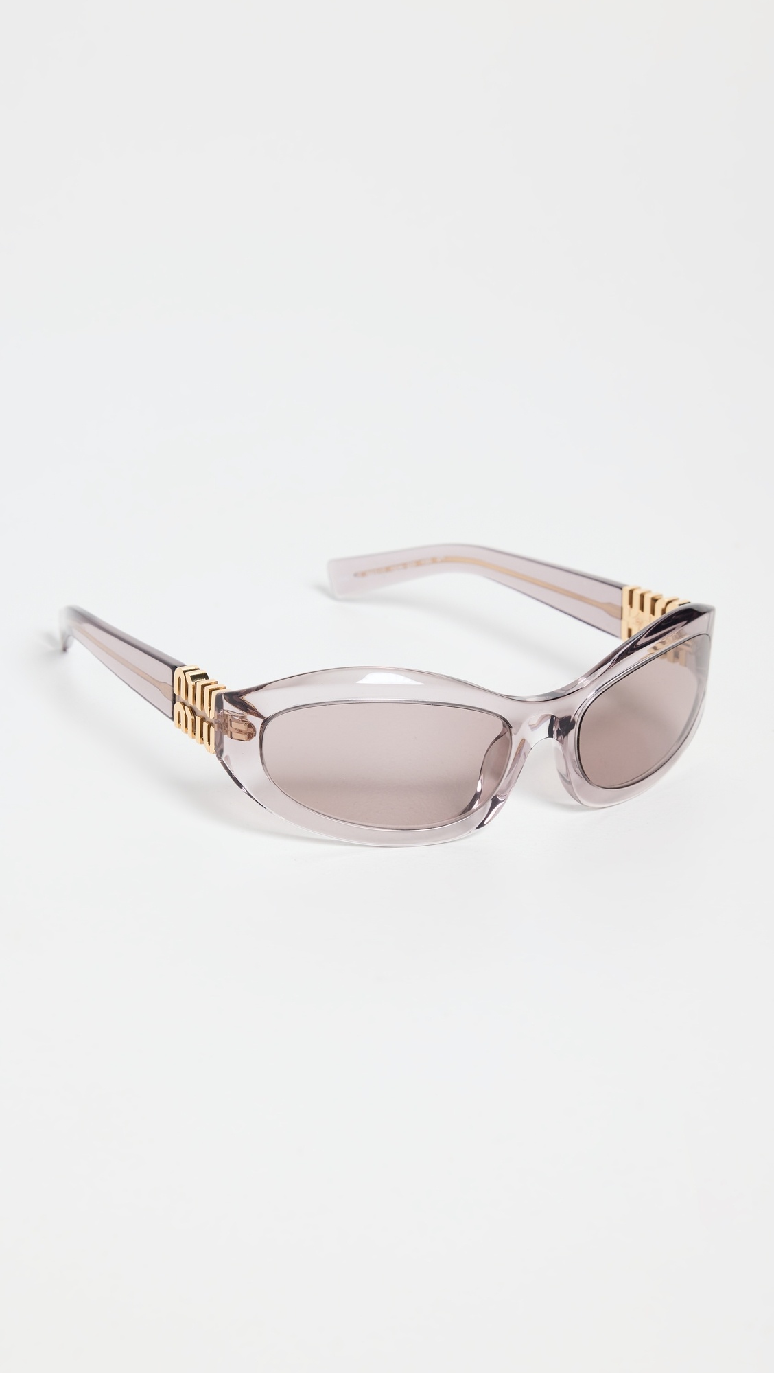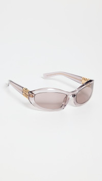 - Transparent frames - Gold-tone logo at arms - Hardshell case included - Wrap frame - Non-polarized lenses - Made in Italy - Plastic frame - Plastic lenses Style #MIUMI30129 Size & Fit Width: 6in / 15cm Lens Width: 59mm Bridge: 21mm Arms: 135mm Height: 1.5in / 4cm