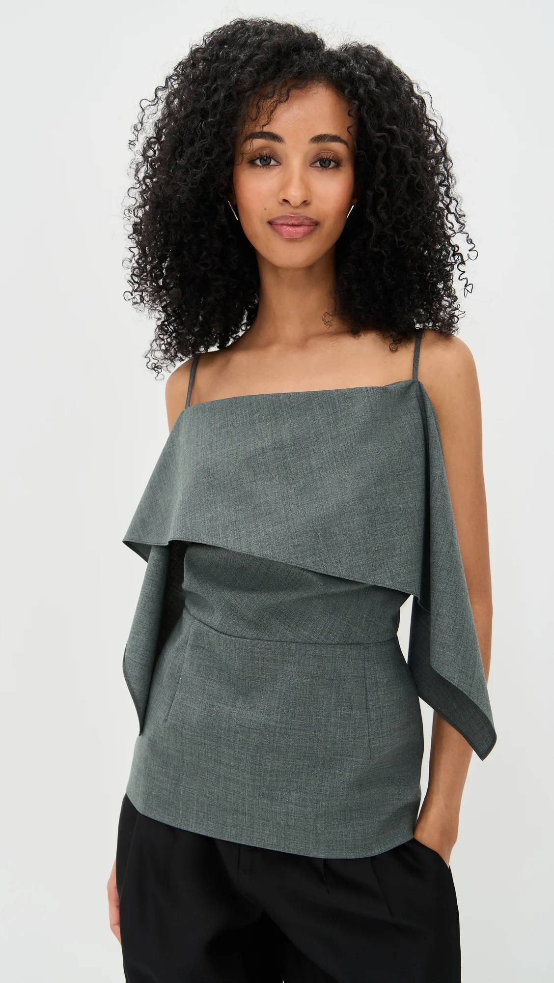 - Fabric: Lightweight, non-stretch suiting - Draped overlay at neckline - Low back - Cowl neck - Adjustable shoulder straps - Hook-and-eye and hidden zip at back - Shell: 54% polyester/44% wool/2% elastane - Unlined - Dry clean - Made in Italy Style #MMSIX30709