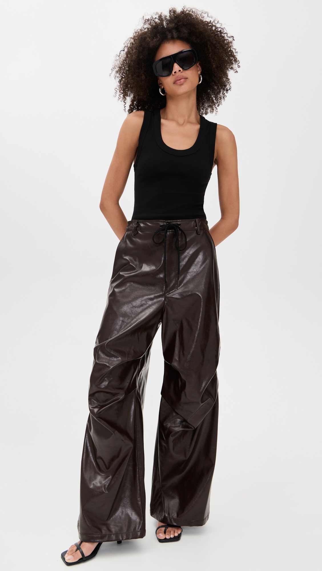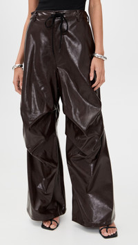 - Fabric: Mid-weight, non-stretch faux leather - Hook-and-eye closures at waist, zip fly - Drawstring waist - Slant hip pockets and patch back pockets - Shell: 100% viscose - Dry clean - Made in Italy Style #MMSIX30653 Size & Fit Customers say: Runs large; please size down. Model measurements: Size 36: Drew (5'8") usually wears size 36-38 Measurements from size 36 Rise: 14.25in / 36cm Inseam: 28.75in / 73cm Leg opening: 26in / 66cm