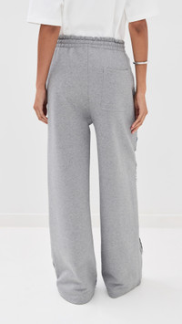 - Fabric: Heavyweight french terry with stretch - Denim front panel with raw edges - Button closure and zip fly - Covered elastic waist with drawstring - Slant hip pockets and patch back pocket - Shell: 100% cotton - Unlined - Dry clean - Made in Portugal Style #MNSEE30514