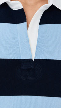Striped Cascade Half Placket Knitted Top