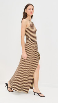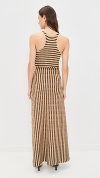 - Fabric: Lightweight ribbed knit with stretch - Striped pattern - Draped faux wrap skirt - Midi length - Crew neck - Sleeveless - Pullover design, no closure - Shell: 100% cotton - Unlined - Wash cold - Imported, China Style #NANUS30523