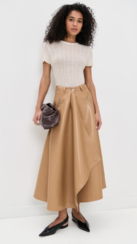 - Fabric: Mid-weight, non-stretch faux leather - Wrap design with button closures - Zip front pockets and patch back pockets - Shell: 100% polyurethane - Lined - Lining: 50% cotton/50% tencel lyocell - Dry clean - Imported, China Style #NANUS30541