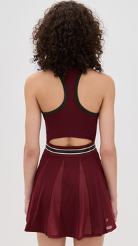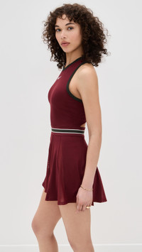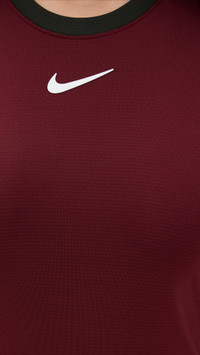 - Fabric: Lightweight, super-stretch performance jersey - Godet skirt with sheer mesh panels - Mini length - Crew neck - Covered elastic waistband - Shell: 89% polyester/11% spandex - Wash cold - Imported, Cambodia Style #NIKEE30020