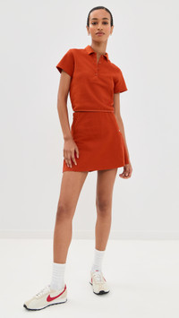 - Fabric: Lightweight, low-stretch technical weave - Rubber golf and logo graphic at back - Cropped profile - Polo neckline - Short sleeves - Partial button placket - Shell: 70% cotton/30% polyester - Wash cold - Imported, Vietnam Style #NIKEE30256