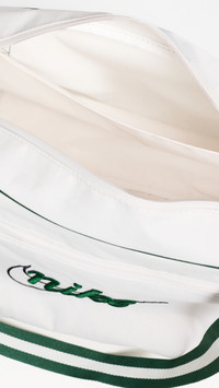 - Technical weave - Stripe webbing straps - Embroidered logo at front - Zip at top - Patch interior and side pocket - Zip exterior and interior pockets - Optional, adjustable strap - Lining: Unlined - Weight: 14oz / 0.4kg - Imported, Indonesia Style #NIKEE30709 Size & Fit Length: 21.25in / 54cm Height: 10.25in / 26cm Depth: 7.75in / 20cm Strap drop: 18in / 46cm Handle drop: 9.75in / 25cm