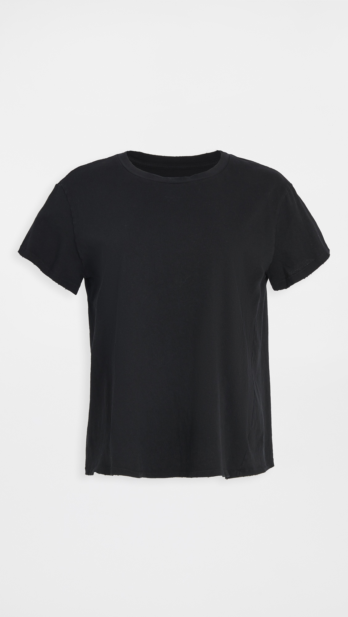 - Fabric: Lightweight jersey - Distressed edges - Ribbed crew neck - Short sleeves - Shell: 100% cotton - Wash cold - Made in the USA Style #NLOTA20726 Size & Fit Measurements from size XS Length: 24in / 61.0cm, from shoulder