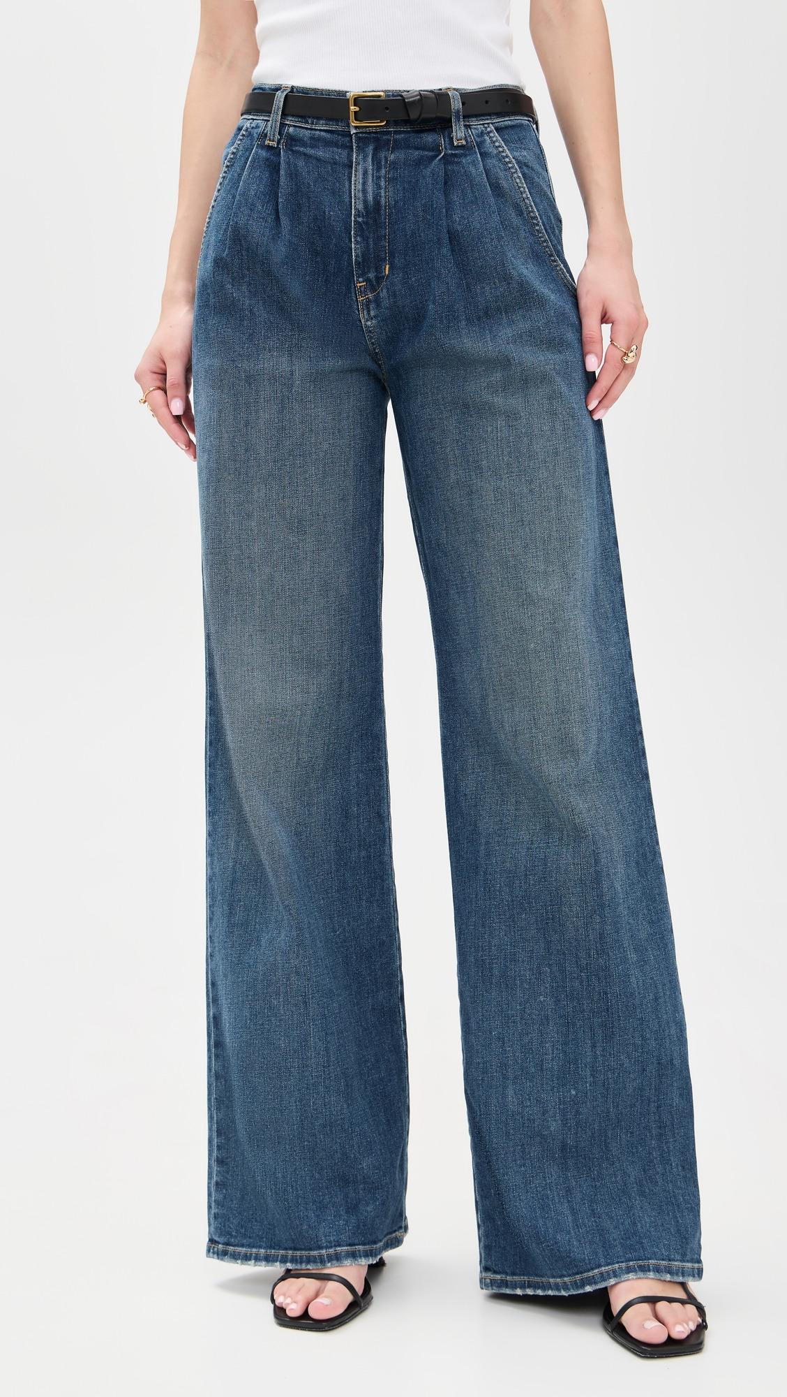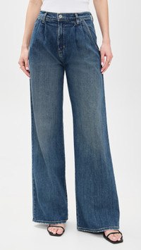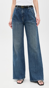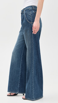 - Fabric: Mid-weight, non-stretch denim - Fading and lightly distressed - Pleating details at front - Flare silhouette - Button closure and zip fly - Slant front pockets and welt back pockets - Shell: 98% cotton/2% polyurethane - Wash cold - Made in the USA Style #NLOTA21108 Size & Fit Measurements from size 26 Rise: 11.75in / 30cm Inseam: 33.75in / 86cm Leg opening: 23.5in / 60cm