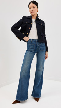 - Fabric: Mid-weight stretch denim - Fading and whiskering - Full length - Button fly - Patch front and back pockets - Shell: 98% cotton/2% polyurethane - Wash cold - Made in the USA Style #NLOTA21025 Size & Fit Intended to sit high on the waist with a flared leg. Stretch denim has a softened hand. Shopbop’s expert stylist says: Runs small; please size up Model measurements: Size 25: Somin (5'10.5") usually wears size 25-26 Measurements from size 25 Rise: 10.25in / 26cm Inseam: 34.25in / 87cm Leg opening: 23.5in / 60cm