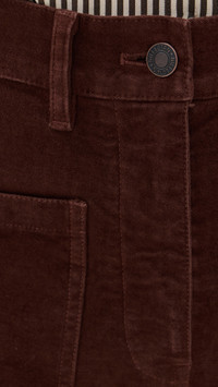 - Fabric: Mid-weight, low-stretch velveteen - Button closure and zip fly - Patch front and back pockets - Shell: 97% cotton/3% elastane - Wash cold - Made in the USA Style #NLOTA21704 Size & Fit Model measurements: Size 2: Samruddhi (5'8") usually wears size 0-2 Measurements from size 0 Rise: 10.75in / 27cm Inseam: 34.25in / 87cm Leg opening: 22.75in / 58cm