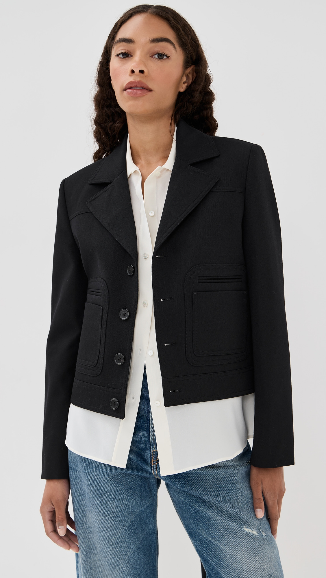 - Fabric: Mid-weight, non-stretch wool twill - Notched lapels - Collared neck - Long sleeves - Button placket - Patch and welt front pockets - Shell: 100% virgin wool - Lined - Lining: 100% viscose - Dry clean - Made in Portugal Style #NLOTA21678