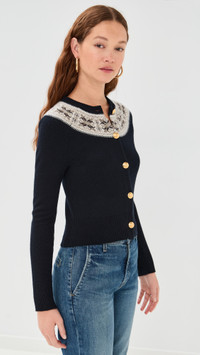 - Fabric: Mid-weight stretch knit - Jacquard fair isle pattern - Gold-tone logo crest buttons - Ribbed trim - Crew neck - Long raglan sleeves - Shell: 100% cashmere - Dry clean - Imported, China Style #NLOTA21736 Size & Fit Model measurements: Size XS: Maia (5'10") usually wears size XS Measurements from size XS Length: 19.75in / 50.0cm, from shoulder