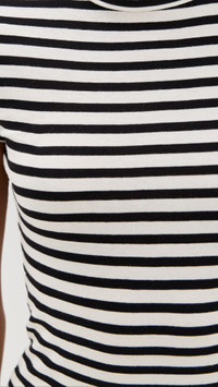 - Fabric: Lightweight stretch jersey - Striped pattern - Crew neck - Short sleeves - Pullover design, no closure - Shell: 100% cotton - Wash cold - Made in the USA Style #NLOTA21616