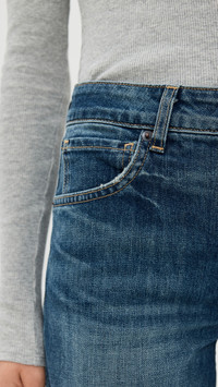 - Fabric: Mid-weight, low-stretch denim - Fading and whiskering - Button closure and zip fly - 5-pocket styling - Shell: 98% cotton/2% polyurethane - Wash cold - Made in the USA of imported materials Style #NLOTA21500 Size & Fit Model measurements: Size 25: Mia (5'9.5") usually wears size 24 Measurements from size 25 Rise: 9.75in / 25cm Inseam: 28in / 71cm Leg opening: 22.75in / 58cm
