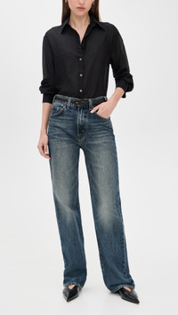 - Fabric: Mid-weight, non-stretch denim - Fading and whiskering - Full length - Button closure and zip fly - 5-pocket styling - Shell: 100% cotton - Wash cold - Made in the USA of imported materials Style #NLOTA21279 Size & Fit Customers say: Runs large; please size down. Model measurements: - Size 24: Alina (5'10") usually wears size 24-25 - Size 25: Margaret (5'11") usually wears size 24 Measurements from size 25 Rise: 11.75in / 30cm Inseam: 32in / 81cm Leg opening: 18in / 46cm