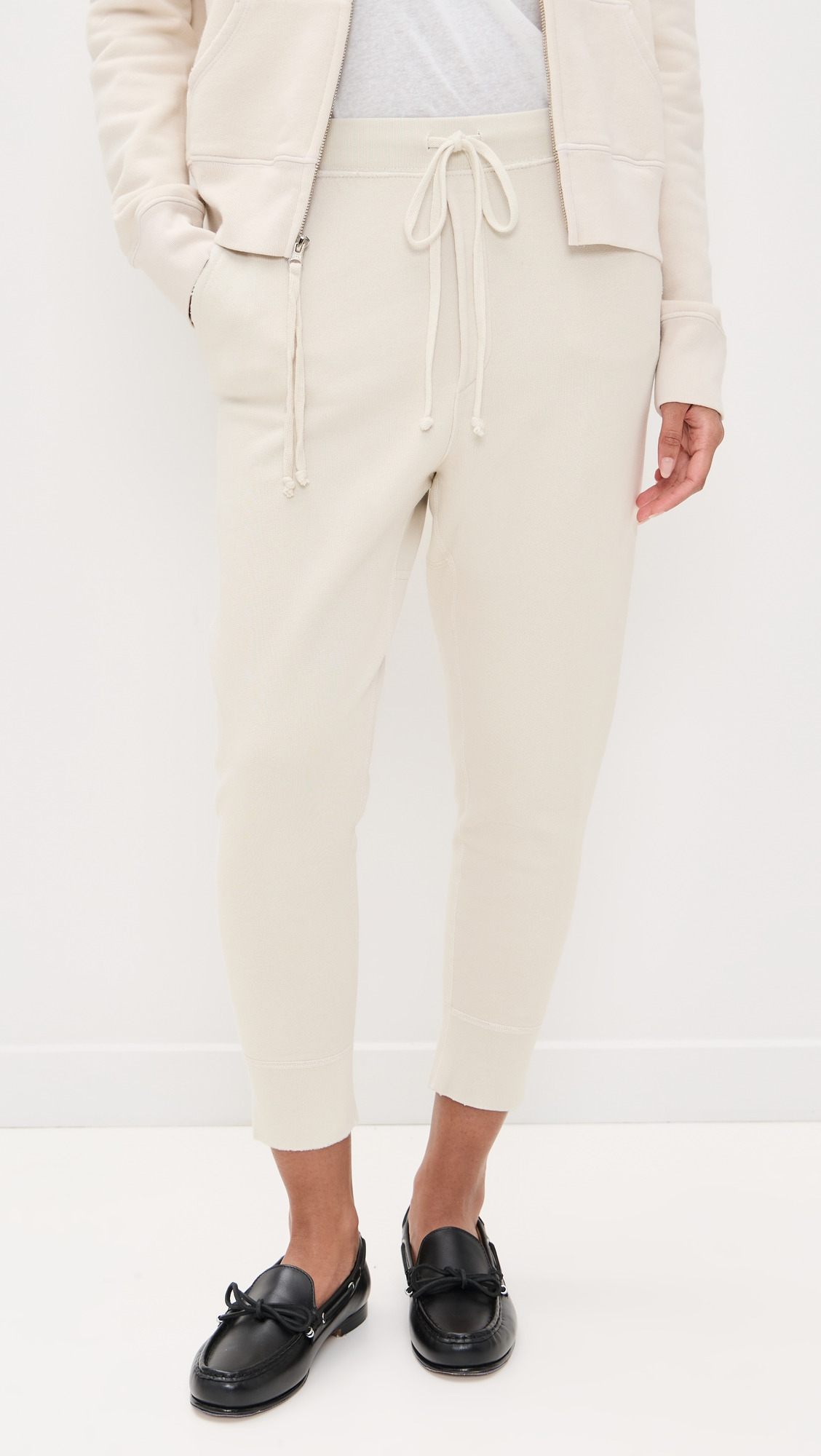 - Fabric: Mid-weight french terry - Faux fly and back pockets - Distressed edges - Cropped profile - Drawstring at waist - Slant hip pockets - Shell: 100% cotton - Wash cold - Made in the USA Style #NLOTA20716 Size & Fit Model measurements: Size M: Samruddhi (5'8") usually wears size XS-S Measurements from size S Rise: 13in / 33cm Inseam: 23.25in / 59cm