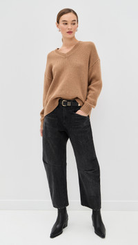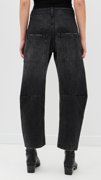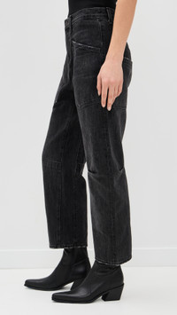 - Fabric: Mid-weight, non-stretch denim - Fading and whiskering - Lightly distressed edges - Button closure and zip fly - 5-pocket styling - Shell: 100% cotton - Wash cold - Made in the USA of imported materials Style #NLOTA21697 Size & Fit Model measurements: Size 25: Mia (5'9.5") usually wears size 24-25 Measurements from size 25 Rise: 10.75in / 27cm Inseam: 26in / 66cm Leg opening: 16.5in / 42cm