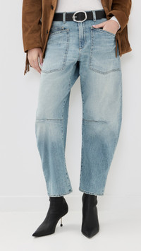 - Fabric: Mid-weight, stretch denim - Shaping darts at knees - Button closure and zip fly - 5-pocket styling - Shell: 98% cotton/2% polyurethane - Wash cold - Made in the USA of imported materials Style #NLOTA21572 Size & Fit Features a mid rise and a curved leg. Stretch denim has a softened, mid-weight feel. Shopbop’s expert stylist says: Runs large; designed with a slouchy fit. For a higher and closer fit, size down Model measurements: - Size 26: Giselle (5'10") usually wears size 26 - Size 26: Megumi (5'9.5") usually wears size 26-27 Measurements from size 26 Rise: 10.25in / 26cm Inseam: 26in / 66cm Leg opening: 15.75in / 40cm