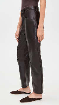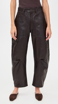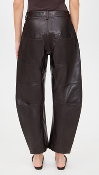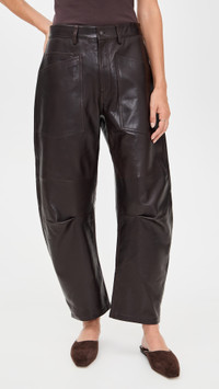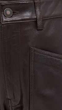 - Fabric: Mid-weight, non-stretch leather - Paneled seams - Darted knees - Button closure and zip fly - 5-pocket styling - Shell: 100% lambskin - Lined - Leather clean - Imported, Turkey Style #NLOTA21649 Size & Fit Model measurements: - Size 2: Sam (5'9") usually wears size 0 - Size 2: Somin (5'10.5") usually wears size 0-2 Measurements from size 2 Rise: 11.5in / 29cm Inseam: 26.5in / 67cm Leg opening: 16.5in / 42cm