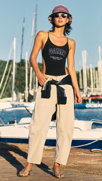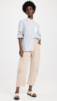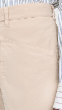 - Fabric: Mid-weight, stretch twill - Patch front and back pockets - Hook-and-eye closures at waist, zip fly - Shell: 98% cotton/2% elastane - Wash cold - Made in the USA Style #NLOTA21312 Size & Fit Measurements from size 2 Rise: 11in / 28cm Inseam: 24.75in / 63cm Leg opening: 17.25in / 44cm