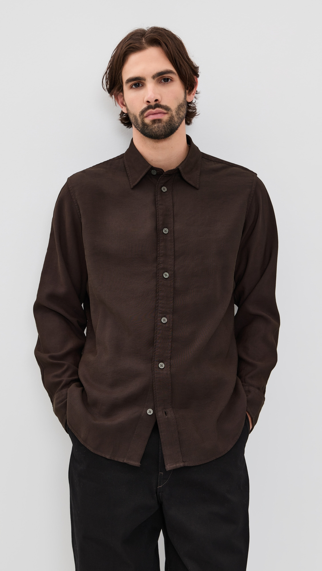 - Fabric: Lightweight, non-stretch weave - Collared neckline - Long sleeves with button cuffs - Button placket - Shell: 90% viscose/10% polyester - Wash warm - Imported, China Style #NNSEV30192 Size & Fit Model measurements: Size M: Gordon (6'1") usually wears size M Measurements from size L Length: 30.25in / 77cm Sleeve: 35.5in / 90cm Chest: 47.25in / 120cm